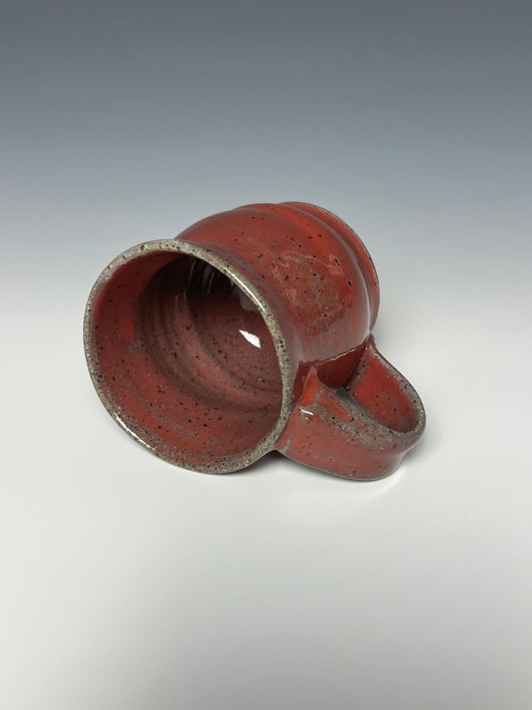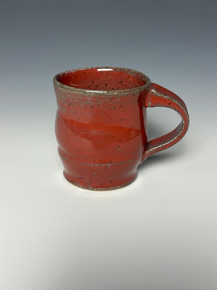 little red mug, holds 5oz comfortably. perfect for espresso and cream